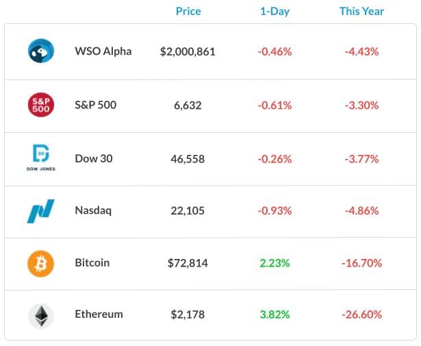 The S&P 500 erased a nearly 1% rally, while megacap stocks extended their pullback to more than 10% from recent highs. Treasury bonds initially rallied on weak economic data but lost momentum as rising energy prices reignited inflation concerns, pushing longer-term yields higher.